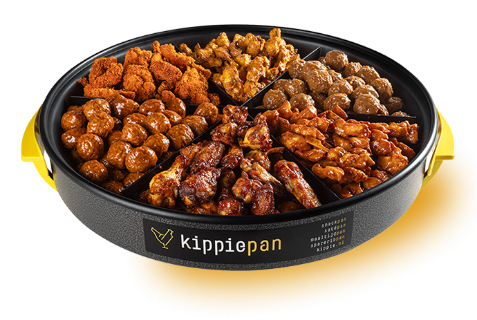 De Feestpan van Kippie: makkelijk, snel en heerlijk! Gevuld met 6 verschillende hapjes. Bestel en maak van elk feestje een smaakvolle ervaring!